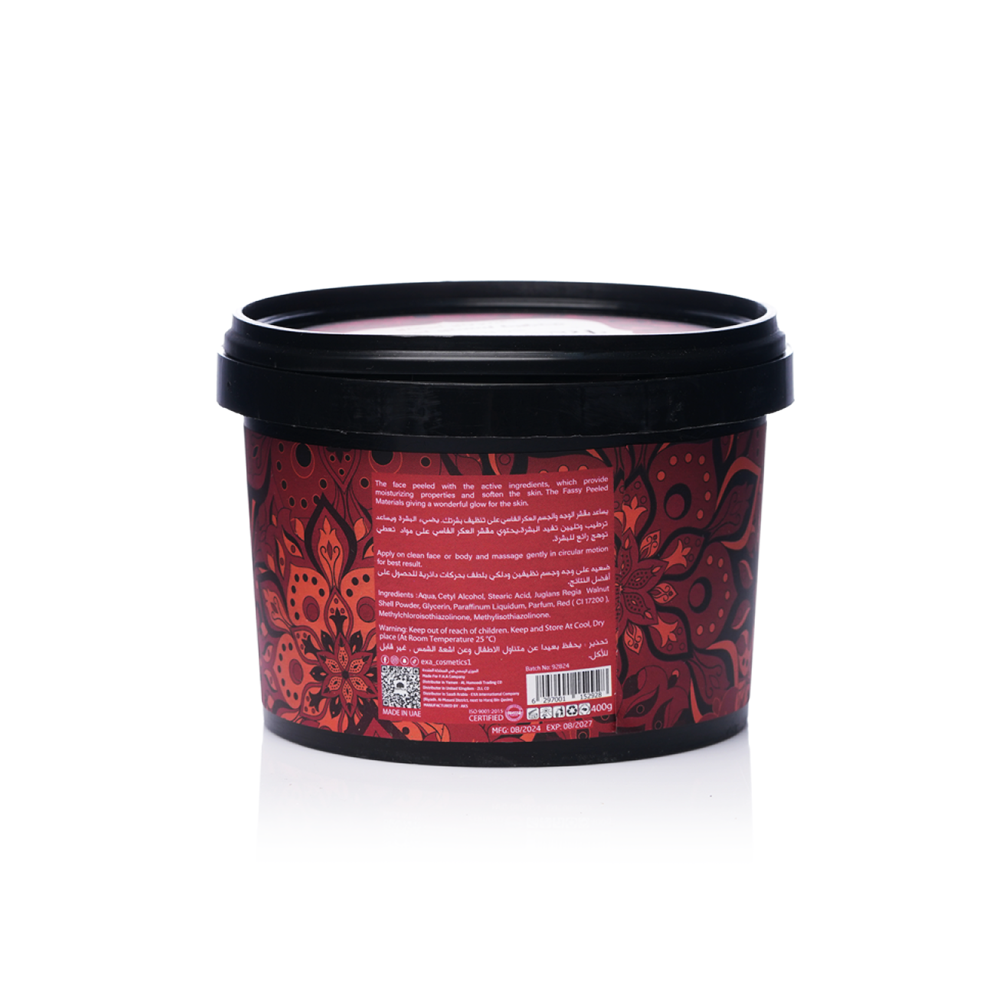 وصف المنتج: يُقدم مقشر الوجه والجسم العكر الفاسي من إكسا تركيبة مميزة تهدف إلى تقشير البشرة بلطف وتفتيحها، مما يمنحها مظهرًا مشرقًا وحيويًا. يعمل هذا المقشر على إزالة خلايا الجلد الميتة والتالفة، مما يساعد في تجديد البشرة وتحسين ملمسها.
